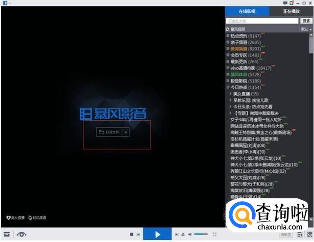 打开你的暴风影音,没有的话就网络搜索“暴风影音”并下载,点击“打开文件”。