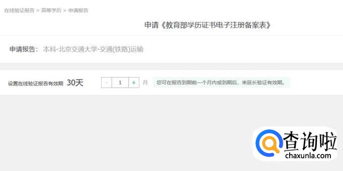 然后我们就可以申请了,一般情况下学历证书电子注册备案表是有期限的,所以我们可以选择最大值180天,然后把学历证书电子注册备案表打印下来就可以了。