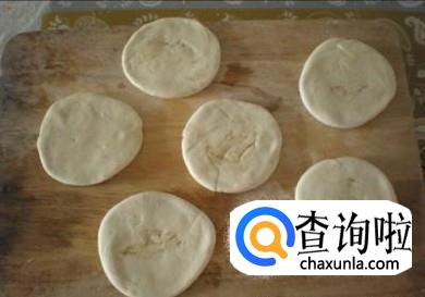 手上沾油进行活面,揪成一个个小面团,压成饼状。