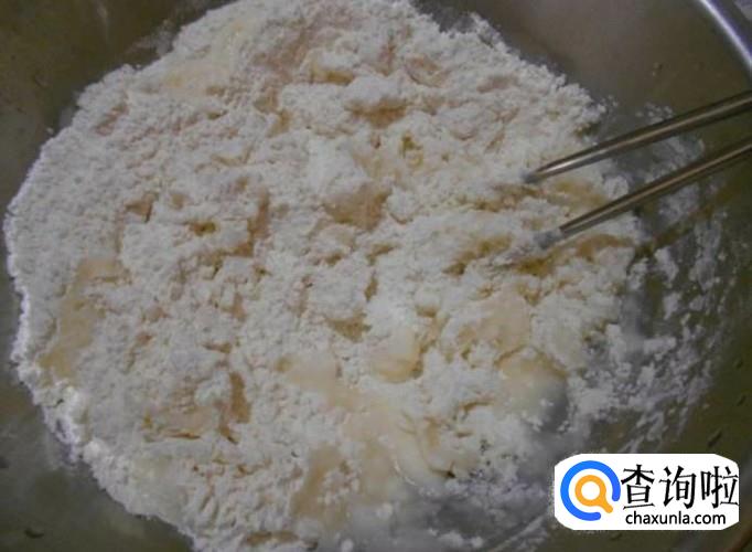 把糖水倒入面粉进行搅拌均匀。