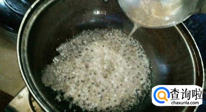 将水烧热,把糖倒进去进行熬制,稍微黏稠就好。