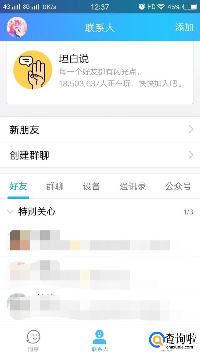 打开手机QQ,将好友设为“特别关心”。