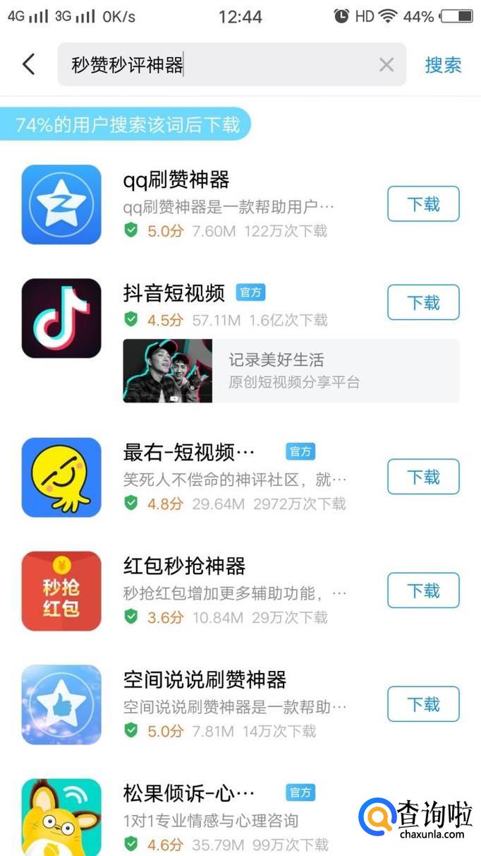 也可以在应用商店搜索相关软件,如下图所示,安装秒赞软件。