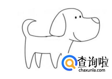 先画出狗的头部,然后画出耳朵,耳朵画后面一根横线,开始画身体的部分。画完身体再补上尾巴和四只脚。最后画上狗狗的眼睛。