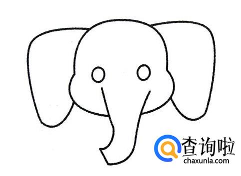 先画出大象的头,然后在左右两边各画上三角形的耳朵,中间加一根长长的鼻子,最后画上两个圆圈作为眼睛就可以。
