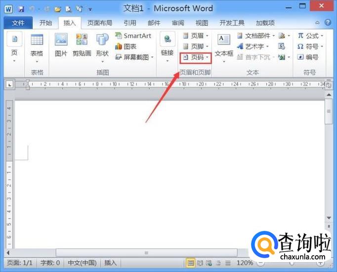 点击插入选项在其内找到页码选项,如图所示: