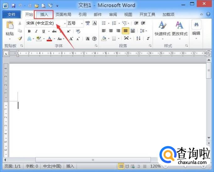 打开word2010之后,在该软件的操作界面内找到插入选项,如图所示:
