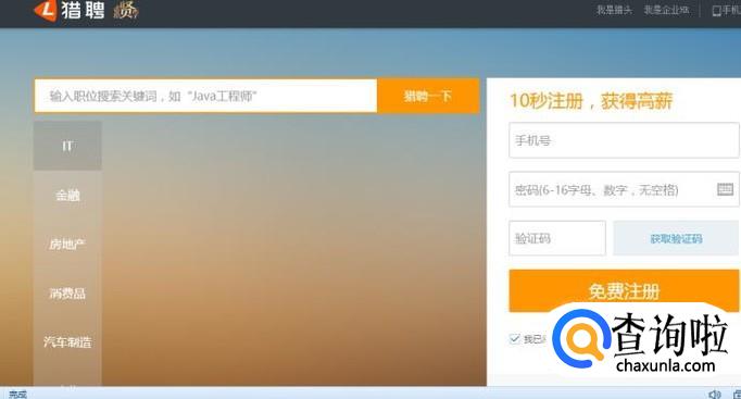 猎聘网:也需登录要网站的网址,然后用电话号码注册,申请合格就行。符合要求之后就可以申请职位投放简历了。(要选择适合自己的工作,认真辨认公司是否存在造假招聘信息的情况。)
