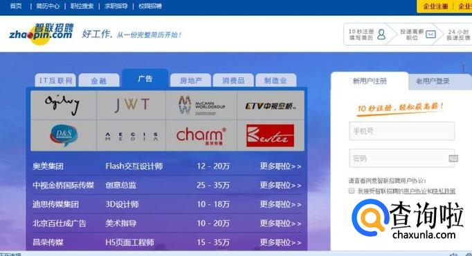 智联招聘:登录网站之后,页面的右侧就有登录用户,注册之后就可以选择工作职位投放简历。