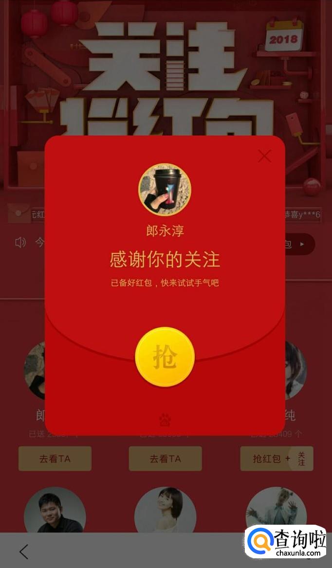 进入活动页面可以看到每个人每天只有6次抢红包的机会,使用完后只能第二天再参加!下面有很多的人可以让我们选择关注,点击人物头像下的抢红包就可以开始抢红包了!