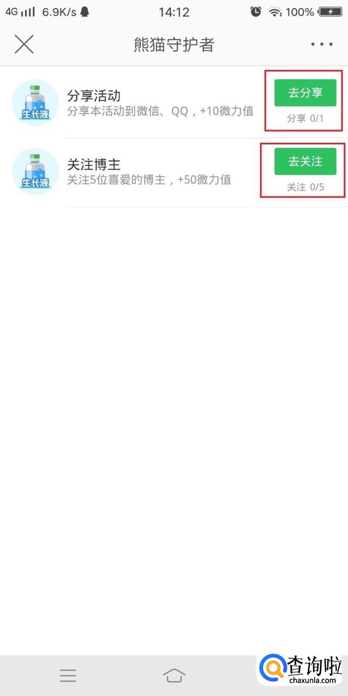 进入道具任务后,点击去分享活动及博主,以获得额外的微力值,如图所示