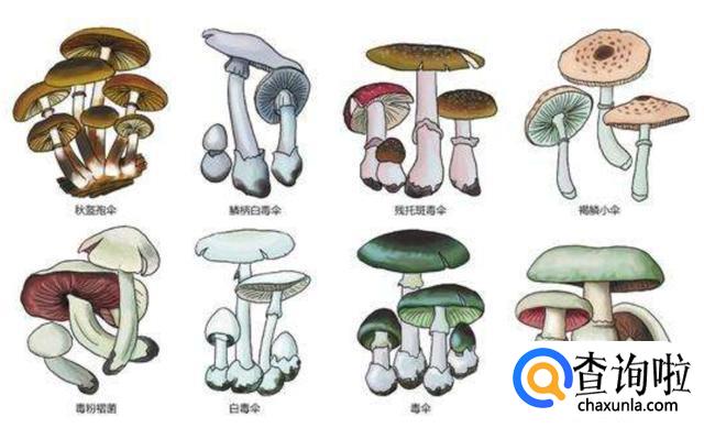 有毒菇菇面颜色鲜艳,有红、黄、绿、墨黑、青紫等颜色;特别是紫色的,往往有剧毒,采摘以后容易变色。