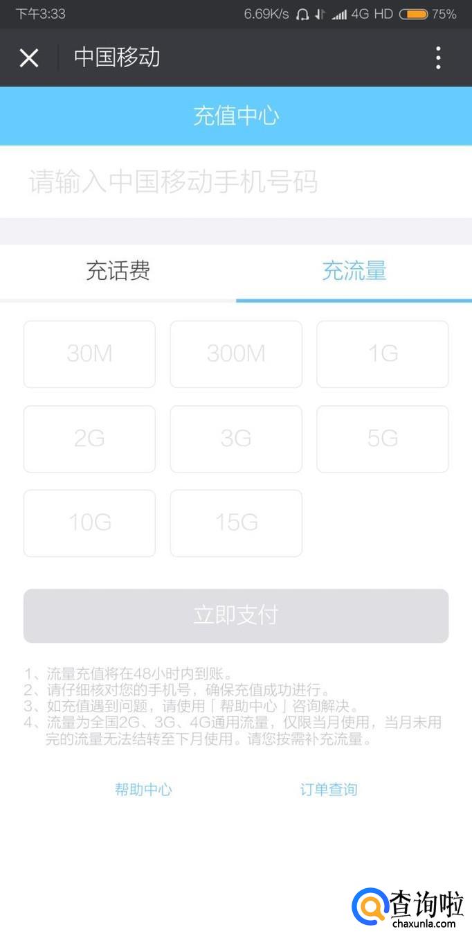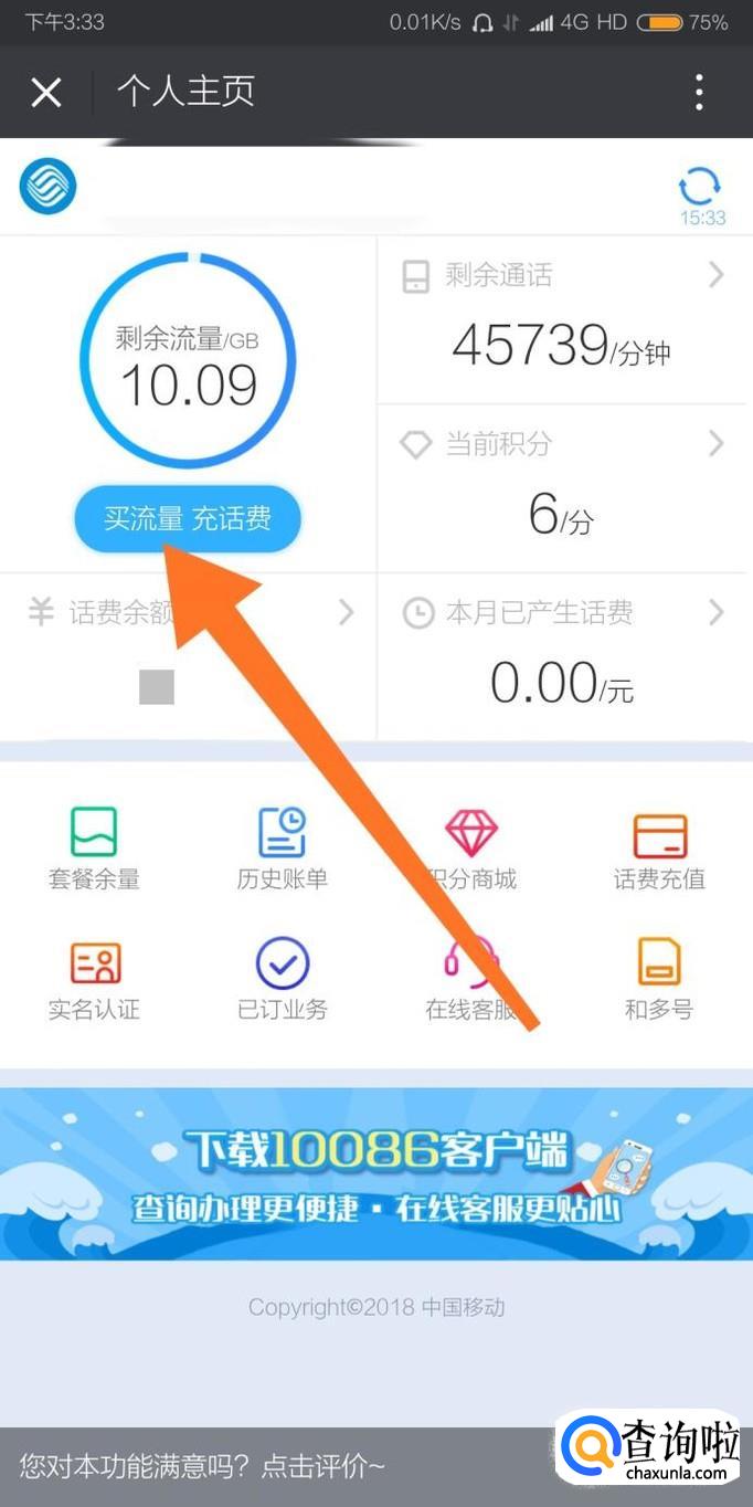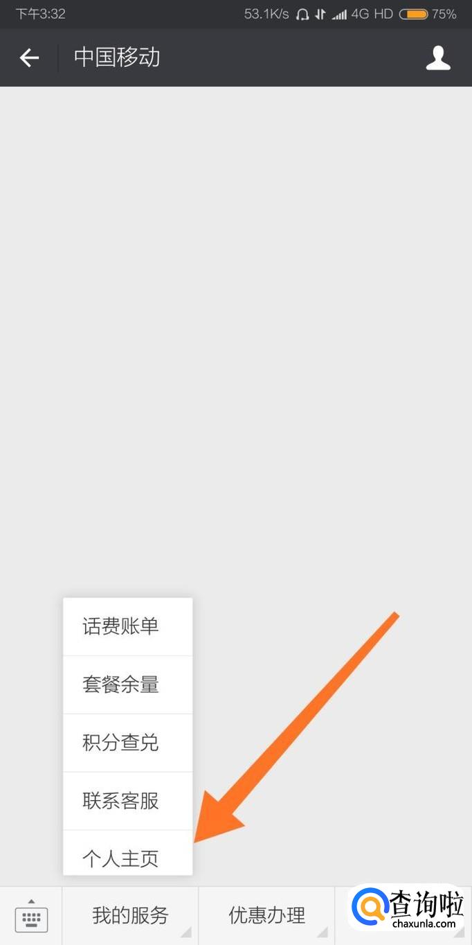 第二种方法是进入中国移动的微信公众号,点击菜单栏“我的服务”,然后进入“个人主页”。再在“个人主页”点击“买流量”,最后根据自己的需要购买流量即可。