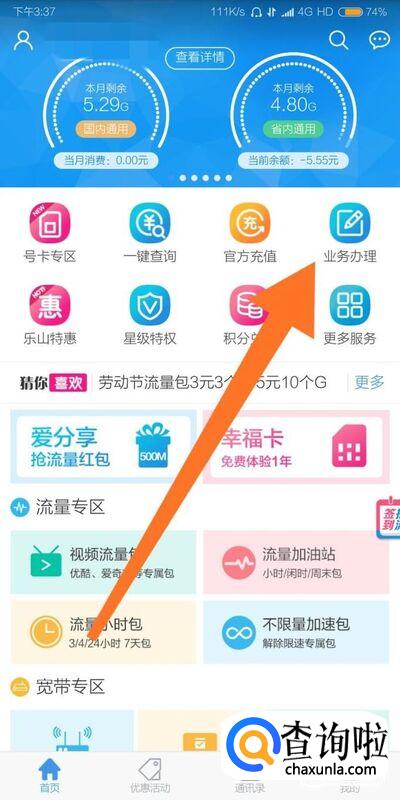 第一种方法是进入中国移动掌上营业厅软件,找到业务办理,点击进入。中国移动的掌上营业厅在手机应用商店可以下载,不同省份还推出了自己独立的掌上营业厅。根据自己的需要选择不同的流量套餐即可快速办理。