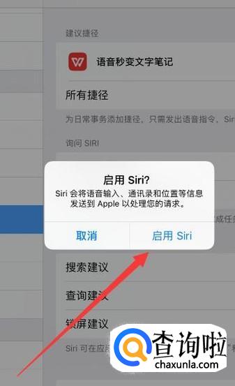 打开一个弹框之后,选择“启用Siri”,如图所示。