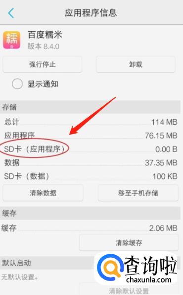 这样就设置完成了,下载软件就会自动下载到SD卡中。我们随意打开一个应用程序信息,可以看到下方储存在SD卡中了,这样就节省了很多空间哦。
