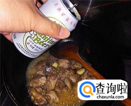 锅里放油,放上葱姜炒出香味,然后把控水之后的鸭子放进去不断翻炒,然后加上半勺老抽不断翻炒,鸭子的颜色会变得特别好看,这时候直接往锅里倒啤酒,一只鸭子有两罐啤酒就差不多了,只要没过鸭子就行。