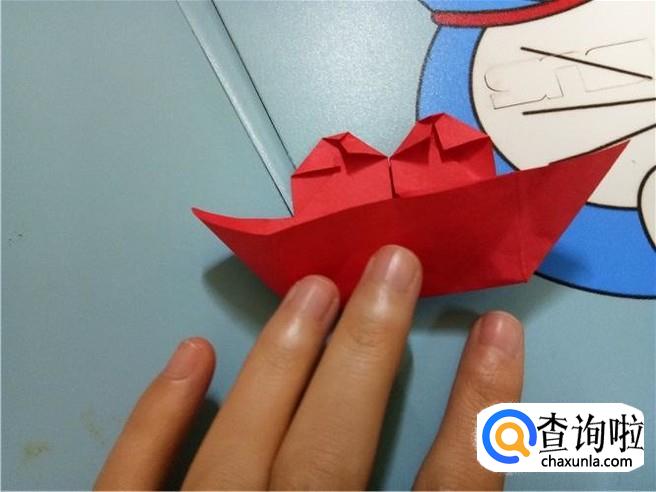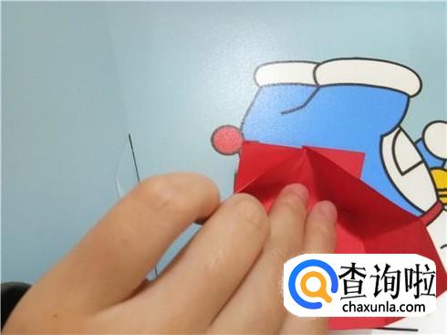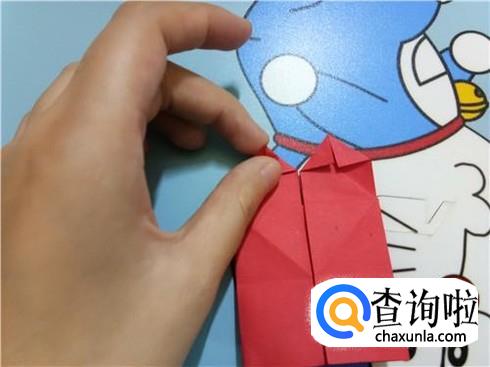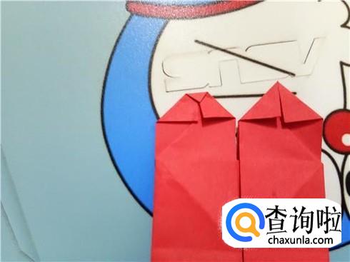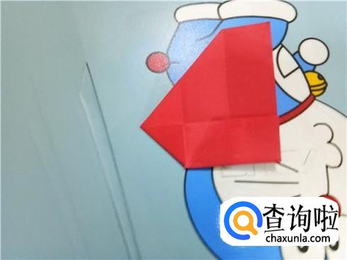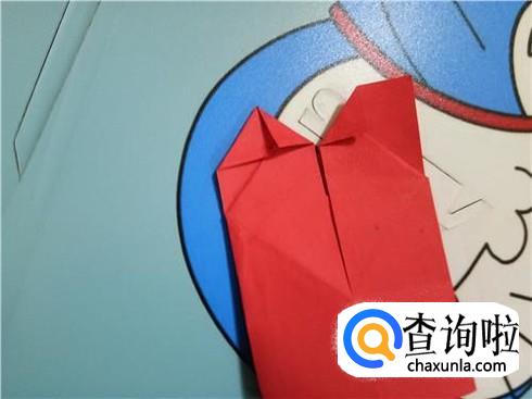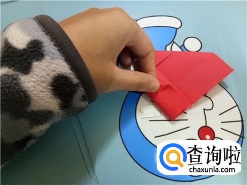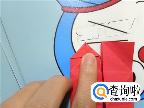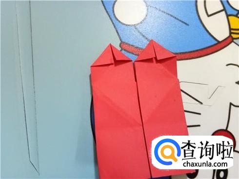在上边两个三角形的地方根据它们各自的中轴线折叠一下,再整理一下顶点,轻轻的折一小部分回来。