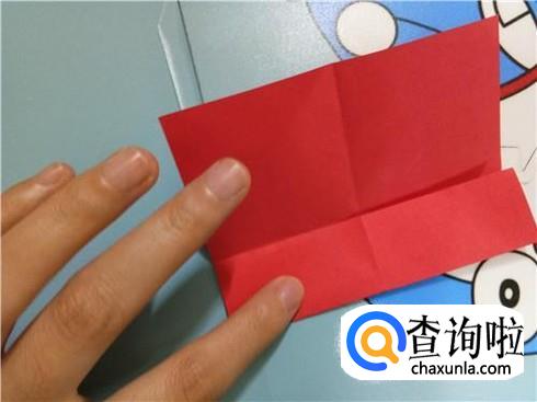 沿着下边部分的中轴线将下边部分折叠一下再放回原处,这样就会形成四个小的正方形,再向上折将上边的小的正方形折成两个直角三角形,两边都是这样。