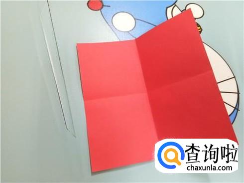 首先,我们找到一张正方形的折纸,并且沿着它的中轴线进行对折,再沿着另一条中轴线进行对折,整张纸成一个“田”字。