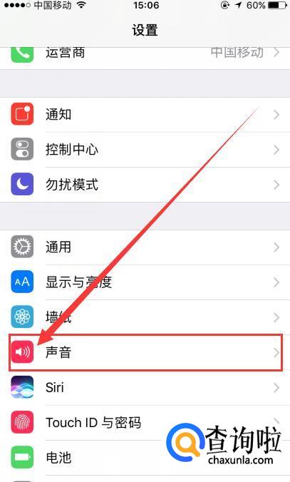 进入设置界面之后,在界面往下找,找到“声音”选项。点击进入。