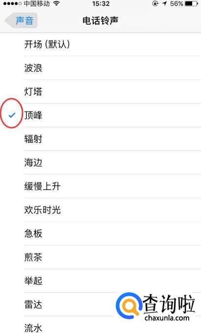 铃声的左边大了“√”的就是当前的手机铃声。
