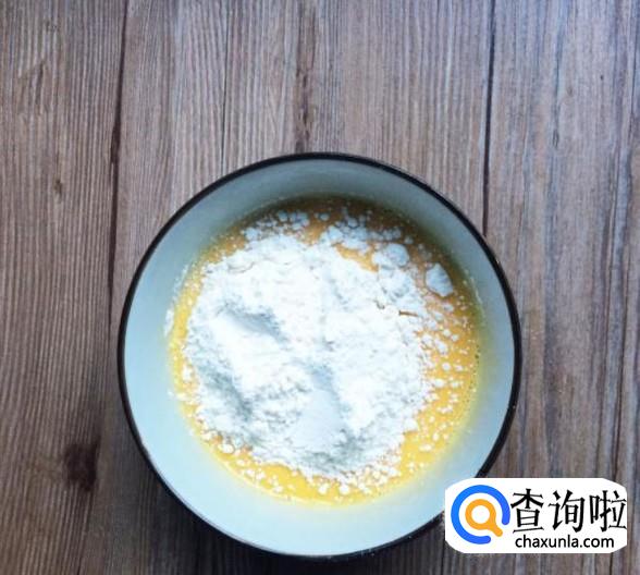 再加入35克牛奶搅匀,一定要多搅打一会,将蛋液与油和牛奶彻底融合。
