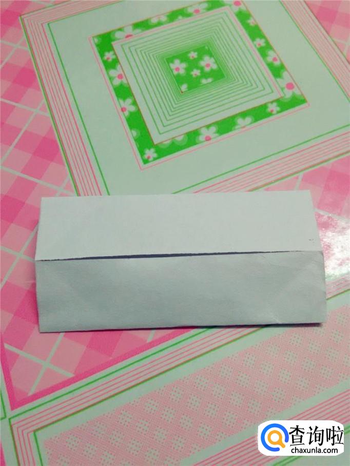 将纸反过来,把上下两条边往中心线上对折。