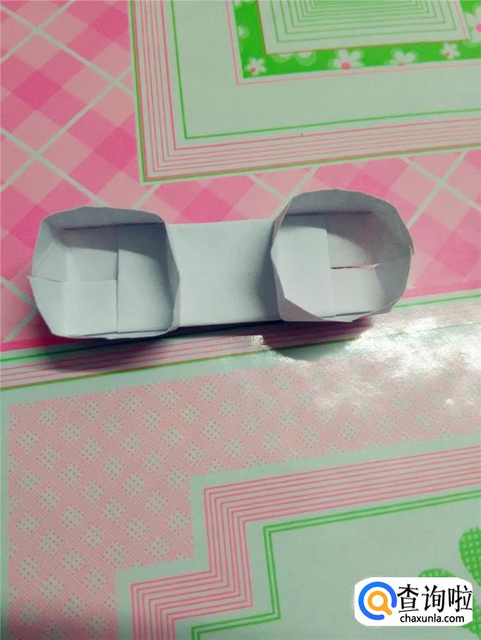 把两边的部分打开,是两个圈起来的小正方形,就象电话的听筒和话筒一样,小电话就折完了。
