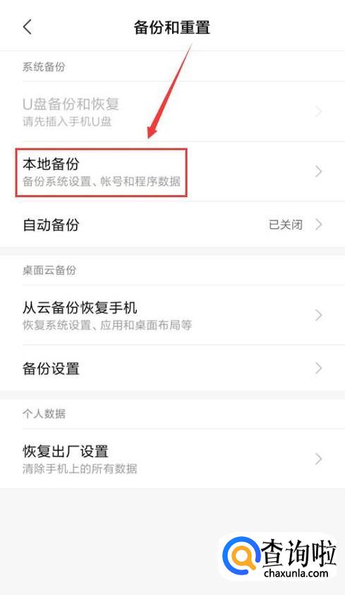 找到“本地备份”。