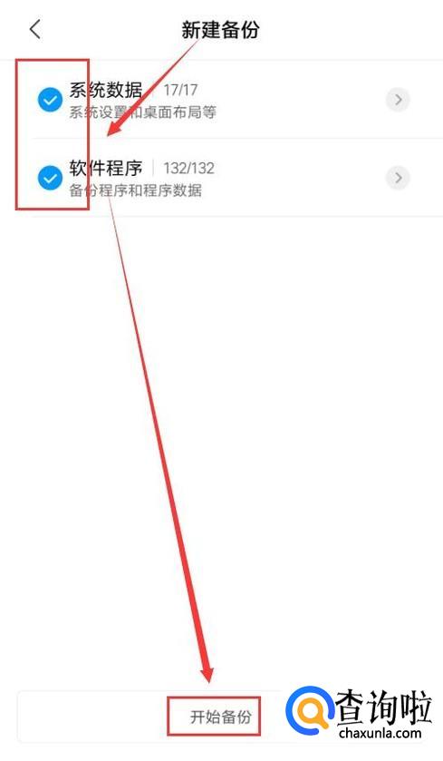 然后点击“新建备份”,这里可以选择在“系统数据”和“软件程序”中备份哪些信息。