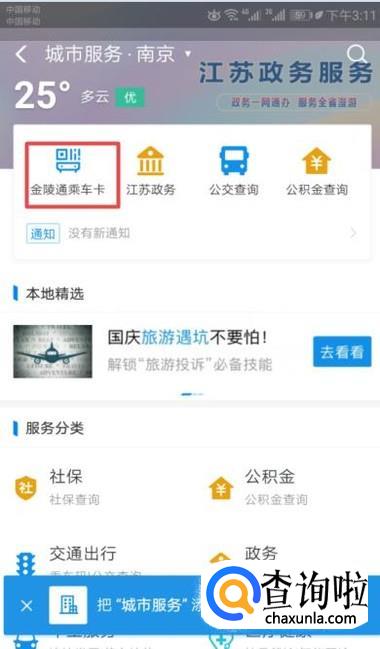 弹出的界面,我们点击金陵通乘车卡;