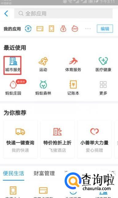 弹出的界面,我们点击城市服务;