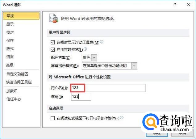 弹出的界面,我们可以看到用户名,这个用户名就是默认的批注名称,我们需要更改它;