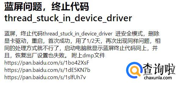 在玩游戏时尝试使用互联网时出现THREAD_STUCK_IN_DEVICE_DRIVER错误。几周前已将Windows 10升级过。帮忙解决一下这个问题呗。