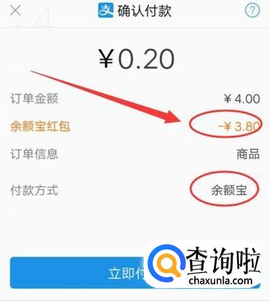 进入之后,扫描商家的收款码,进入支付页面,选择“余额宝”进行支付即可触发红包,如图所示。