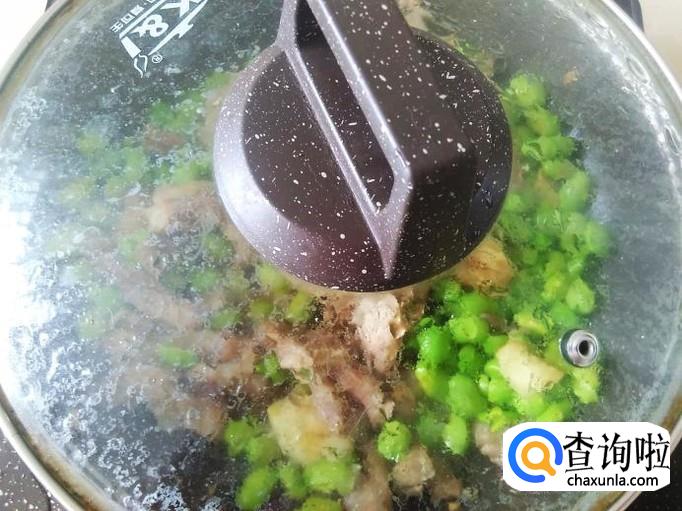 中途打开翻炒一下,焖5分钟左右,香喷喷的肉丝焖青豆就做好了。