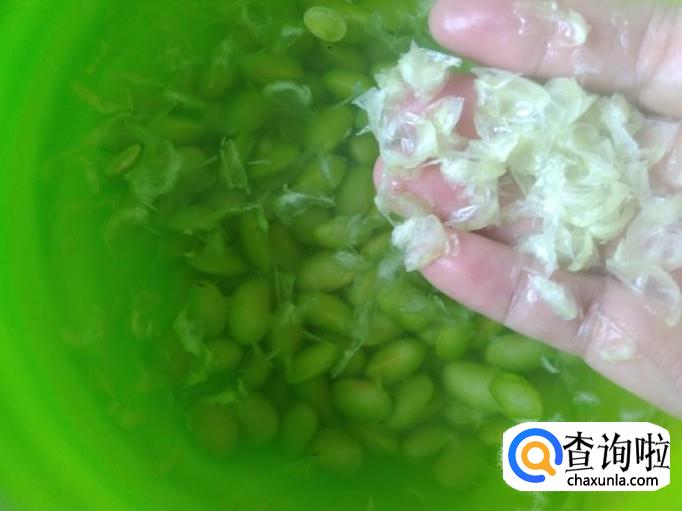 把搞干洗的青豆捞上碟子备用。