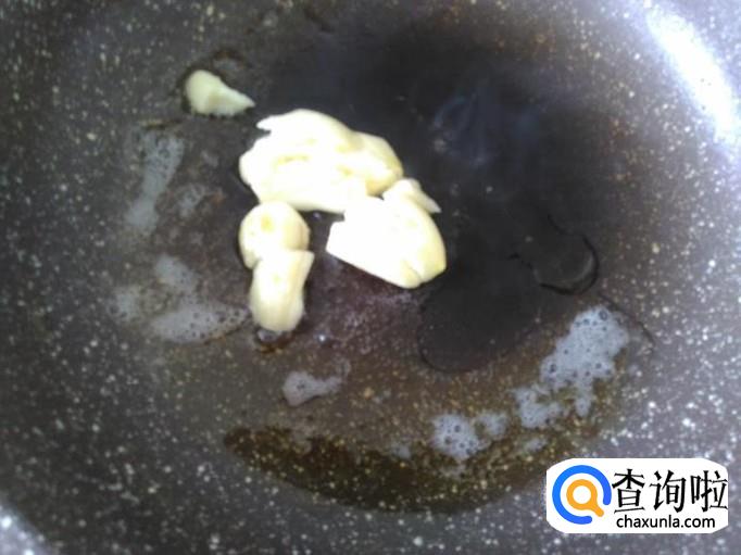 开火下油,放蒜米进去爆香。