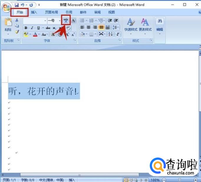 对于中文的音标,我们可以为汉字加上拼音,音标就出来了。打开word文件,输入汉字,选中需加拼音的汉字。
