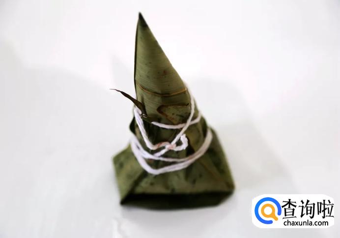 最后我们用棉线绑好我们包好的粽子,绑紧一点,这样包好的粽子就不会漏米了。
