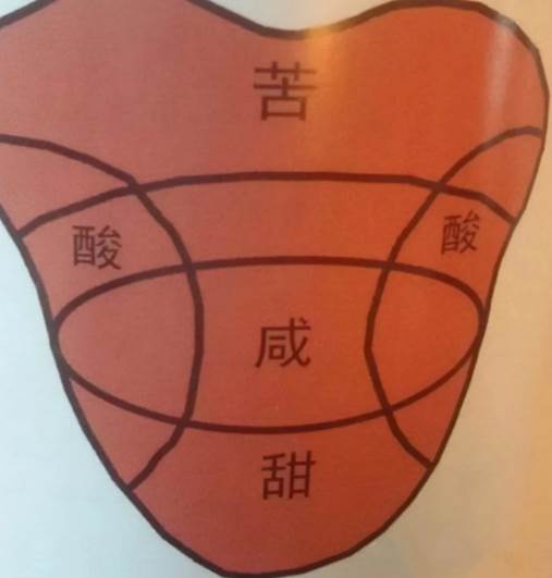 人们常把甜、酸、苦、咸、辣称为五味,其实人的味觉只分出甜、酸、苦、咸四种基本类型,其他味道都是由这四种味觉互相配合而产生的。舌尖两侧对咸敏感,舌体两侧对酸敏感,舌根对苦的感受性最强。舌尖感甜,舌根感苦,舌侧感酸,舌尖周边感咸。