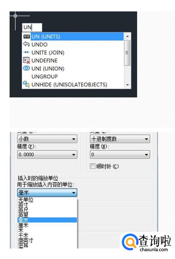 设定CAD软件的具体使用界面,比如:尺寸单位:cad的单位一般为毫米,各个行业使用单位各有特点,根据具体情况选择好,按UN呼出单位选项,选择单位。
