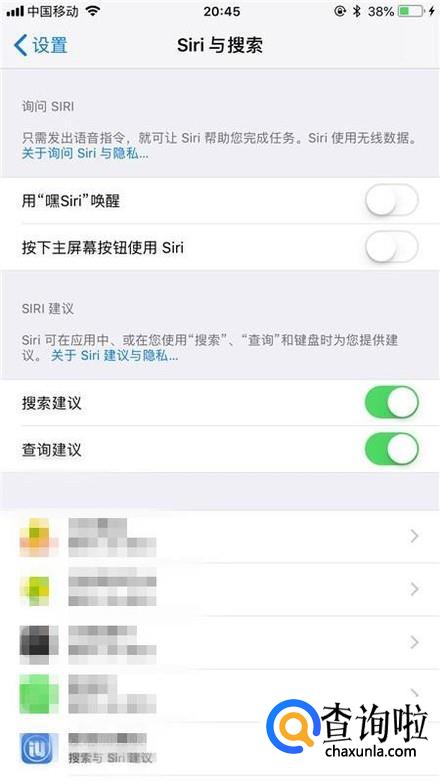 接着点击关闭按下主屏幕按钮使用Siri开关,如下图所示。