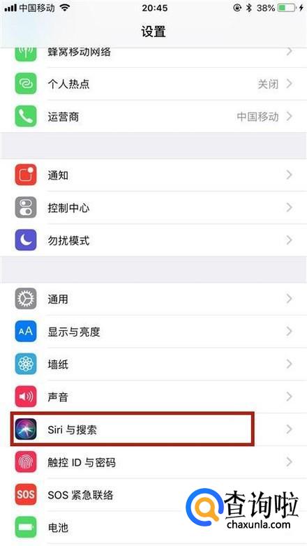 然后点击Siri与搜索,如下图所示