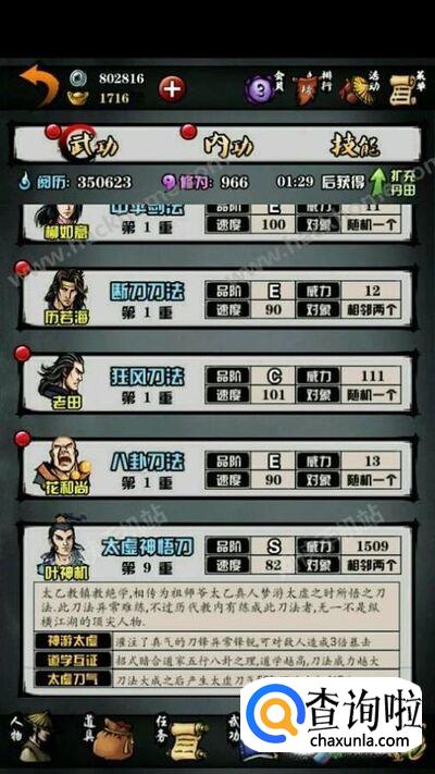 那么赤华上人看到我们拜师之后如此努力,会给我们传授武功。这时候,我们就可以选择心仪的S级刀法太虚神悟刀了。