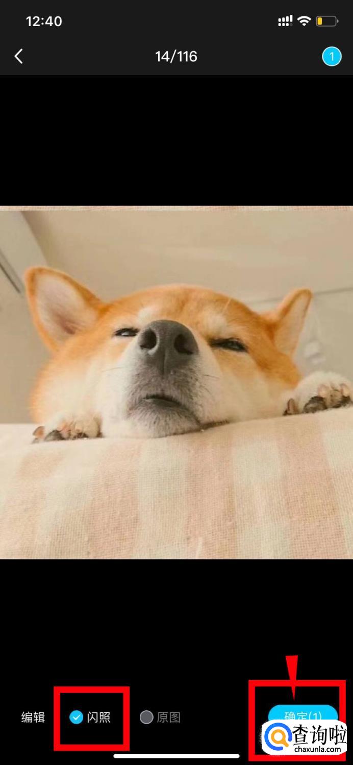 在下方有一个【闪照】选项,点一下有蓝底白勾就可以了。