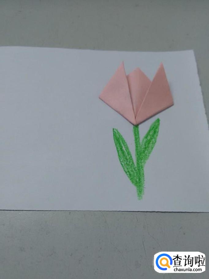 把两边的角往上折,折成郁金香花。
