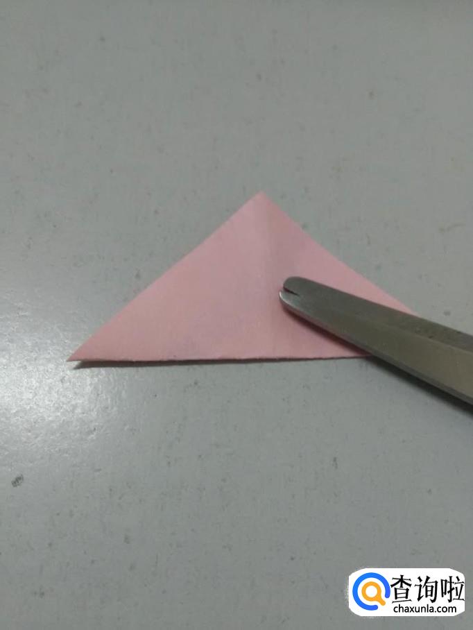 把彩纸角与角对折,折成三角形。