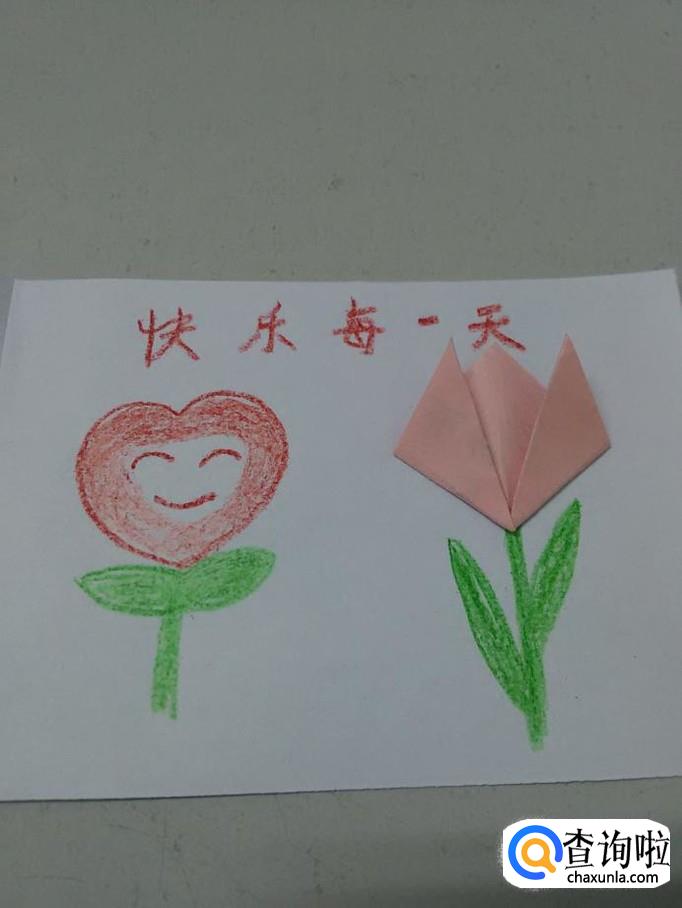 最后用红笔在最上方写下快乐每一天五个字,简单又漂亮的贺卡就做好了。